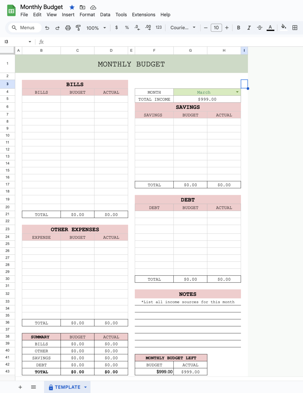 Every day Budget Tracker (Google Sheets)